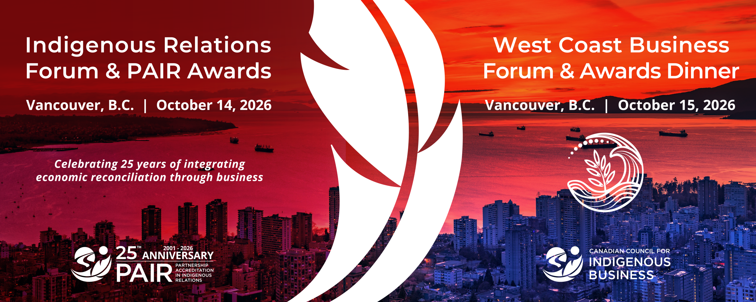 Join us at the Sheraton Wall Centre in Vancouver on October 14 and 15, 2026, for two dynamic and celebratory events: the Indigenous Relations Forum & PAIR Awards and the West Coast Business Forum & Awards Dinner.